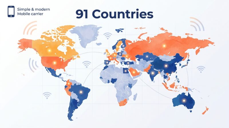 理由①:月額料金内で91カ国の海外ローミングが無料